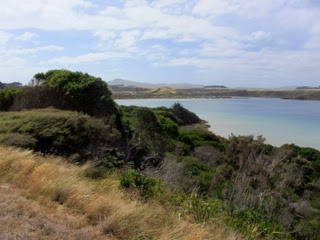 Ráno 26.12. jsme nepřetržitě se hádajíc o množství věcí, které si s sebou budeme brát, vyrazili po silnici číslo 1 na sever. Celou cestu na 270km vzdálený severozápadní mys Cape Reinga se bylo na co koukat. Krajina se nám měnila před očima, jak jsme projížděli mezi nekonečnými pastvinami, kopci a lesy. Poslední část, asi 100 km je poměrně úzký kopcovitý výběžek, kde je často vidět moře na obou stranách, tedy jak Tasmánské moře na západě, tak Tichý oceán na východě. A to se do zeleně pastvin a lesů najednou přidá modř moře a pak šedá, bílá a zlatavá barva nekonečných pláží. Kameny v krajině a skalky jsou černé a šedé a terénní zlomy díky sopečnému původu podloží červené. Je to opravdu skvělá podívaná. Co chvíli jsme zastavili a kochali se pohledem do krajiny. Mají to tady na to na Zélandu zařízené na kochání dobře. Každou chvíli je tady parkovišťátko se stolkem a lavicí a nějakými naučnými cedulemi, kde se krásně kochá.
