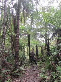 Pro nocování jsme tentokrát vybrali pečlivě místo, které bylo mimo národní park, okýnka nechali zavřená a konečně, i když rozlámaní, jsme se vyspali. Celou noc lilo. Ráno jsme posnídali opravdu hnusné párky a zamířili dále na jih. Rozhodli jsme se, že místo turisticky navštěvované Bay of Islands pojedeme po opačném, tedy západním pobřeží, které bylo v knížce popsané, jako nejméně rozvinutá část Severního ostrova. A dobře jsme udělali. Z větší části prašné cesty vedly překrásnou krajinou kopců, lesů, zátok a pastvin, vesnice převážně Maurské a obyvatelstvo milé. Tak jsme projeli několik údolí kolem hluboké zátoky Hokianga. Nakonec jsme přepluli trajektem přes zátoku do Rewerewe a odtud dorazili na noc do lesa a parku jménem Puketi Forest.