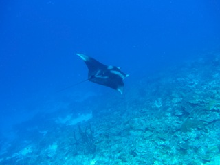 Manta patří mezi rejnoky a je to skutečná královna oceánu. Živí se převážně planktonem. Dorůstá až 7 metrů a 1800kg. Naše manta mohla mít 4-5metrů. Ani jsme nedýchali, když proplouvala pomaličku okolo. Podobně jako Eagle ray je neuvěřitelně ladná. Myslím, že k tomu nemusím víc dodávat, snad jen, že jsem na tuto chvíli čekal od prvního potápění :-) Bylo to poprvé, co jsem tuhle krásku pod vodou viděl a navíc ještě takhle zblízka.