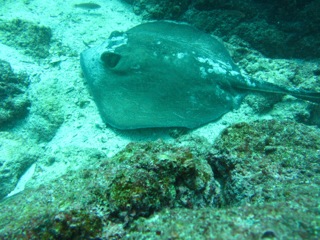 Teď ale k potápění. Takže tady na Galapágách je potápění poněkud náročnější. je to kvůli chladnější vodě, velkým vlnám a hlavně kvůli silným a proměnlivým proudům. Zatím to zvládáme dobře. První den jsme navtívili lokalitu Seymour North a Canal. Oba ponory byly v pohodě, jen byly vlny. Pod vodou to bylo nádherné. Viděli jsme veliké množství útesových žraloků, rejnoky všeho druhu, nespočet ryb. Měli jsme hned na poprvé obrovské štěstí a na konci ponoru jsme viděli i kladivouny. Na chvilku, ale viděli.