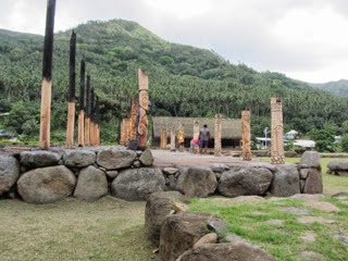 Ve vesnici jsme mimo jiné narazili na velikánskou perfektně udržovanou Morea s mnoha Tiki. Zrovna tam pracovalo mnoho lidí a vyřezávali sloupy hlediště a na pódiu. Vše se údajně připravuje na sobotní svátek hudby a tance. Na starodávném místě plném mana se budou v sobotu tančit tradiční tance ... chceme zůstat, můžeme prý přijít. Už děti ve škole se učí bubnovat a tančit tradiční tance. Každý večer jsou bubny z vesnice slyšet dlouho do večera ... věřte mi, že je velmi půspobivé ... sedíme tady na lodi a z pevniny k nám doléhá bubnování.