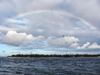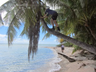Včera jsme přepluli od Tiputa pasu sem na jih atolu. Čekaly tady na nás kýčovitě malebné bílé ostrůvky s kokosovými palmami, laguny s křišťálově čistou vodou, všemi odstíny modré, zelené a hnědé, krásné korály i neuvěřitelné pohledy na veliké vlny tříštící se na vnejším útesu.