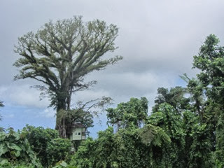 Navazuji na včerejší článek, který skončil po nedělní mši, když jsme se vydali na výlet autem na jih ostrova. Cesta vedla přes hory přes deštný les. Zastavili jsme na několika vodopádech a pak vidím ceduli Lupe Sina Tree resort. Viděl jsem jejich letáček v turistickém informačním centru v Apia a tak jsme sjeli na cestu do lesa a jeli podle šipek. Aha, vy asi nevíte, co je to tree resort. No já jsem viděl na tom letáčku fotku domu postaveném vysoko na kmeni Banyánu. To jsou takové ohromné stromy, které se dožívají až 600 let a jsou tady jednak v lese a pak po celé Polynésii na svatých místech. Ony rostou ty Banyány vlastně do strany a od shora dolů spouští nové kořeny. Jsou to vskutku majestátní stromy, když nějaký potkáte, určitě se zastavíte a budete chvíli žasnout.