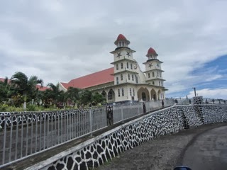 Ráno v neděli, to už jsme měli auto, jsme vyrazili do kostela. Kostelů je tady neskutečně mnoho, jsou často vedle sebe, různé křesťanské denominace i sekty, od katolíků, metodistů, protestantů, adventistů až po mormony a jehovisty. Všichni tady mají obrovské kostely a pozemky v naprosto příkrém rozporu s chudobou a prostotou zejména vesnic dál od centra. Popravdě jsem z nich trochu pohoršený, ale myslím, že se k tomu dostanu později. Dobře, církve a jejich nekřesťanské praktiky tady na Samoa nás nemohli odradit od návštěvy kostela, kde místní nádherně zpívají. navíc byla bílá neděla - něco jako dětský den. Všechny děti byli v bílém, holčičky princeznovské šaty, kluci košile a lava-lava. Většina rodičů také v bílém, slavnostně oblečení. Moc hezké.