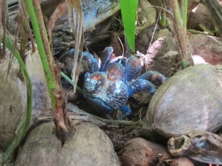 My jsme nakonec kraba přeci jenom k jídlu měli, mohu říct, že je dobrý ... ale dalšího asi už mít nemusím, protože se mi zdá, že mařit život 10 let starého kraba, aby měl jeden člověk večeři není úplně v pořádku. Najíst se lze i jiným způsobem, třeba chytáním langust a ryb, ty mají velmi dobrou reprodukční schopnost a doplní stavy mnohem rychleji. Na obydlených pacifických ostrovech jsou kokosoví kraby téměř nebo úplně vyhubeni, přesněji vyjedeni. Na Anchorage Island jsou kokosoví kraby také. Proto tady správce parku nemůže pěstovat žádnou zeleninu, oni totiž všechno přelezou, všude se dostanou a pak všechno snědí. Aby je tady lidé nechytali, jsou všude cedule, že na ostrově byl umístěn jed na krysy a kokosoví kraby požírají potom ty mrtvé krysy, no a tak jsou ti kraby vlastně také otrávení ... s těmi krysami nevím, prý tady nějaké opravdu byly, asi z nějaké lodi, ale víc si myslím, že se jedná o jediný způsob jak dosáhnout toho, aby jachtaři ty kraby nesnědli.