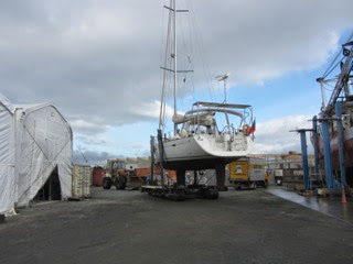 Dnes za námi byli z doků, kde nám budou loď vytahovat, aby přeměřili základní rozměry a připravili se na nás. Naši kamarádi z lodě Oda mají s lodí na souši velký problém, protože jim loď posadili jenom na kýl a řádně nepodepřeli a ta se vlastní vahou mírně ohla kolem kýlu a praskly jim vnitřní vzpěry uvnitř lodě. Mají Bavarii, nicméně Perla je loď podobné konstrukce. Jsou na jiném místě, nicméně nás to pořádně znervóznělo, takže jsme si nechali celý proces důkladně vysvětlit a požadujeme dodatečnou podporu při uložení. No snad všechno dobře dopadne, budou to ale zase nervy :-)