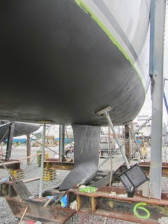Barnekly - tři dny nám trvalo, než jsme všechny ty příšery odrbali, odrhli, oškrábali a obrousili z trupu. Dnes už jsou obroušená místa natřená základovou barvou. Místo šedé základovky nám soudruh zmatenec ze Seahawku dodal žlutou, takže momentálně vypadá loď jako velikonoční vajíčko. Mezitím přestalo i pršet a tak jsme stihli zjistit, že máme asi dvoucentimetrovou vlasovou trhlinu na kormidle, ze které po kapičkách vytéká voda. Voda v kormidle - totální panika. Tak jsem sedl na Internet, zkonzultoval to se známými v Čechách a udělal opravu. Ta spočívala v tom, že se vyvrtají dvě díry na spodní hraně kormidla, aby vytekla voda. Pak to musí vyschnout, trhlinu jsem vybrousil do tvaru V a pak zalil epoxidovým plnidlem. Nakonec se stejně zadělají díry, všechno se přetře expoxidovou barvou, základovou barvou a antifoulingem a je to ... haha. V mezičase jsem stihl opravit kýl na všech místech, kde koukala rezavějící ocel. Opě, podobně, jako v případě kormidla jsem se vyřádil s epoxidovým tmelem, a dvousložkovou barvou. Teď už byste díry ani nenašli.