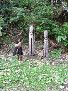 My jsme kromě jiných potkali muže jménem Samuel a ten nám vyprávěl o své rodině a kolik a jaké práva vlastní. Později jsme zjistili, že si asi nevede špatně, protože má také veliký zděný dům a syna na vysoké škole na Tonze. Samuel vyřezával nádherné a veliké tamtamy. pro obchodníka z Kaledonie jich měl několik desítek.
