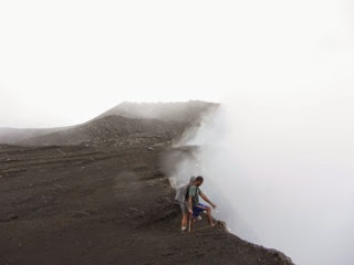 Když jsme začali stoupat z planin na vrchol Marumu, začalo být postupně velmi chladno a na samotném vrcholu lilo a lilo, mraky se hnaly přes okraj kráteru a my jsme mohli podle mohutného hřmění a mručení pod námi tušit, kde je lávové jezero. Občas se přes nás přehnal sirovodíkový mrak, to se nedalo dýchat a pálili nás oči. Pak se nad námi Marum slitoval, mraky se na minutu rozestoupili a my jsme nepříliš hluboko pod námi spatřili lávové jezero, žhnoucí oranžové, vařící se, bublající, jak pekelný oheň. Byl to neskutečný pohled, i když trval je takovou chvilku. Další půlhodinu jsme stáli v dešti a větru a čekali, jestli se nám ještě láva ukáže, ale neukázala. Značně prochladlí jsme zahájili sestup dolů. S klesající nadmořskou výškou teplota rychle stoupala a to už jsme museli sundávat větrovky a pláštěnky a pod žhnoucím sluncem jsme pochodovali sopečnou plání zpátky k pěšině vedoucí dolů do Ranvetlamu.