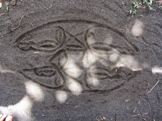 Teď k našemu vlastnímu pozorování. Skupina ostrovů Maskelyne Islands má rozsáhlý systém útesů a díky němu jsou tady silné proudy. My jsme cestou ze sousedního Epi zamířili jihovýchodním pasem dovnitř a na první dvě noci jsme zakotvili u ostrůvku Sakao. Počasí bylo mírné a tak jsme mohli spíš se zájmem sledovat víry na vodní hladině jako důkaz silného proudění, než řešit nějaké dobrodružné situace. Podle naší mapy se na severním okraji Sakao mělo nacházet klidné kotviště u malé vesnice. Ukázalo se, že z vesnice tam jsou jen tři polorozbořené domy a kotviště je sice klidné, co do větru, ale jinak hluboké, plné korálů s velmi strmě se svažujícím dnem a proud dosahoval podle stádia přílivu a odlivu rychlosti více jak 2 uzlů. Místo bylo ale natolik malebné, že jsme zůstali dva dny. Hned první odpoledne po příjezdu k nám zajel na své kánoe Simeon z hlavního ostrova Uliveo. Jezdí každý den rybařit a hospodařit na Sakao. Přejede úžinu, zvládne proudy a na pádlo nebo plachtu dojede několik mil ráno tam a odpoledne zase zpátky. Simeon je původem z ostrova Ambrym, kam poplujeme za dva dny a na Maskelyne se přiženil. Příští rok chce zpátky i s rodinou. Jako správný Ambrymák je Simeon řezbář, jen jeden ze tří na Maskelyne. Protože jsme měli cestou z Epi štěstí na ryby, tak jsme ho hned podarovali hlavou veliké dorády a ještě jednou španělskou makrelou, co jsme chytili cestou. Nemyslete si, hlava je pro zdejší to nejlepší z ryby. My si sice z ryb bereme jen filety, ale místní si nejlépe pochutnají na hlavě.
