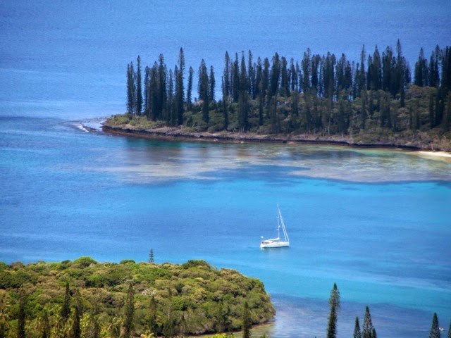 Doplout na plachty na Ile des Pins z Noumea je docela náročné, protože všude v laguně jsou silné proudy a převládající vítr je přesně ze směru ostrova. My jsme měli zase jednou štěstí a v den, kdy jsme tam vyrazili, tak se vítr stočil a my jsme krásně doplachtili 70NM a spustili kotvu v malebné zátoce Baie du Konumera.