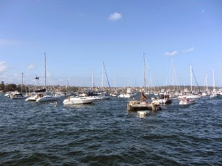 Ráno jsme se probudili a Perla byla pokrytá souvislou vrstvou popela a ohořelých zbytků rachejtlí. Bylo co umývat a zametat. Lodě kolem jedna po druhé zvedaly kotvy a odplouvaly unaveně z Farm Cove a jiných míst a celý přístav byl nyní posetý loděmi a čluny a všichni jezdili tam zase zpátky a trajekty se jen těžko proplétaly tím hemžením a tak alespoň troubily a lidé si mávali a kapitáni trajektů nadávali. My jsme také zvedli kotvu a vypluli do Rozelle Bay k rybímu trhu, kde jsme si dali malý oběd. Pak jsme si dali druhý oběd u nás na lodi - tradiční čočku. A stejně pomalu, jako ostatní jsme pluli přístavem až jsme do razili do Manly, kde jsme vysadili Hanku s Davidem, protože tam měli auto. Manly je čtvrť hned u vjezdu do Sydney Harbor. Z Centra tam jezdí každých dvacet minut trajekt.Manly se moc líbí Páje. je to mladá serfařská a party čtvrť. Na jedná straně je Sydney Harbor a trajekt a na severní straně je otevřená serfařská pláž s dlouhou stezkou okolo. Plno kaváren, restaurací.
